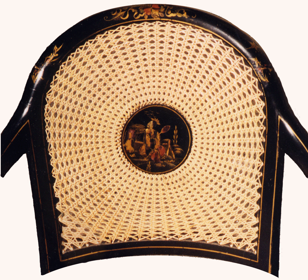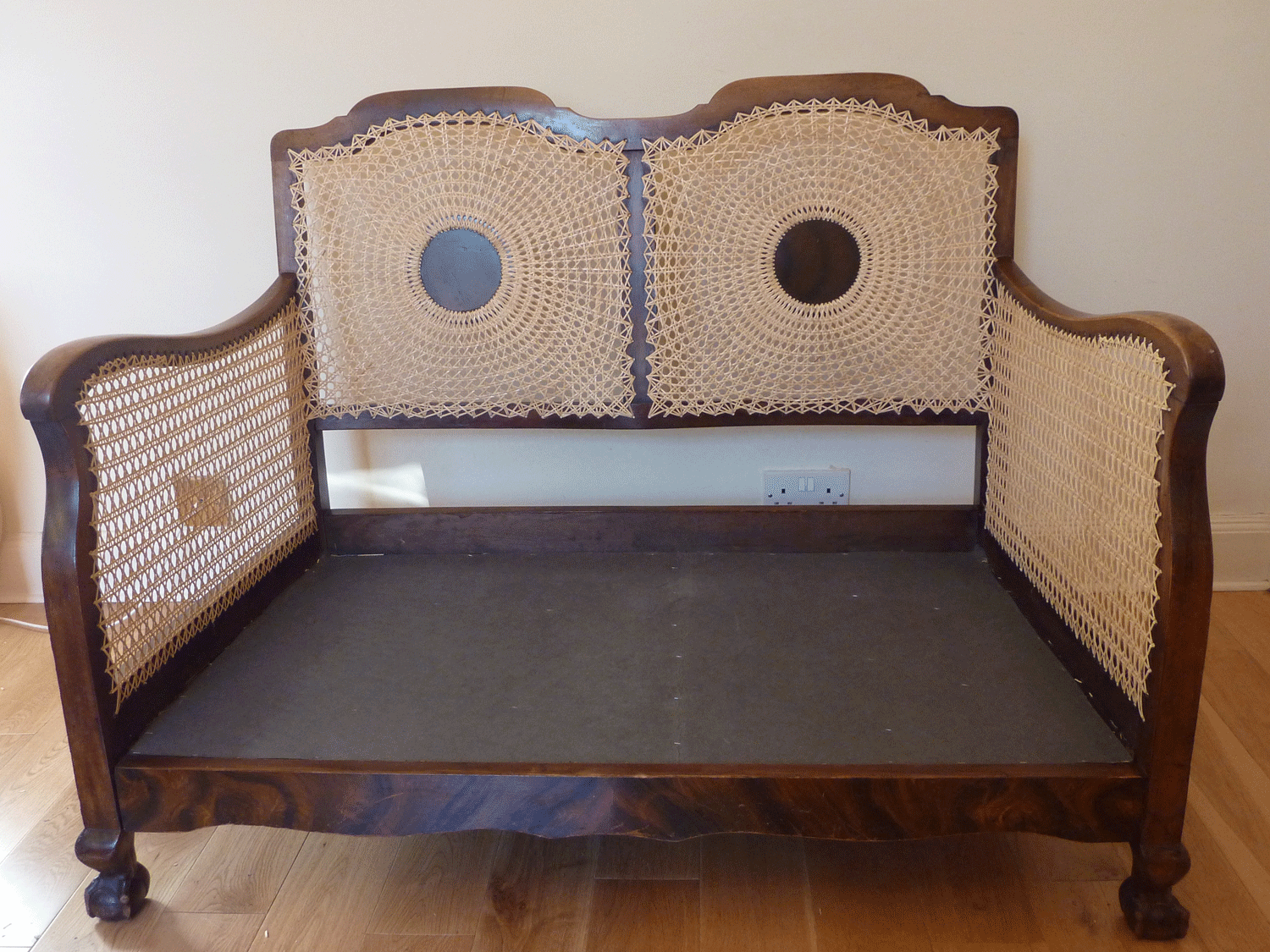 Panels are re-caned on both the inside and outside of the chair frame.